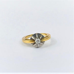 Belle bague solitaire 2 ors 750/1000 ornée d'un diamant brillanté de 0.18ct en serti griffes