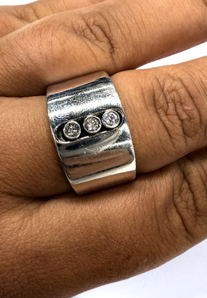 Magnifique bague jonc en or blanc 750/1000 (18k), avec 3 diamants coulissable