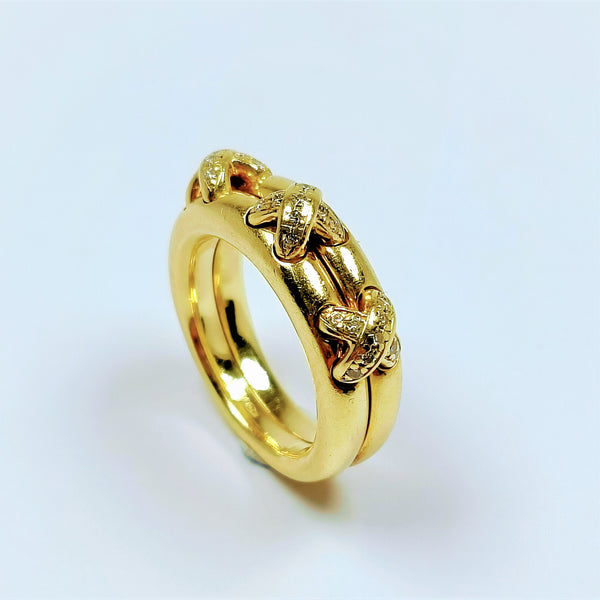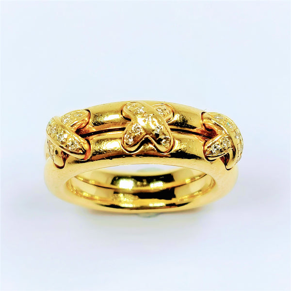 Très belle bague Chaumet Liens 3 croisés or jaune 18k avec éclats de diamants. Parfaite pour rendre chic et sublimer vos tenues !