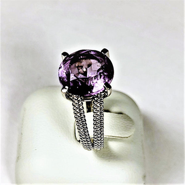 Très belle bague de marque Mauboussin en or blanc avec une belle Améthyste violette.