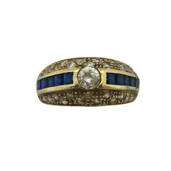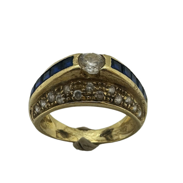 Magnifique bague en or jaune 750/1000 avec pierres bleues et oxydes
