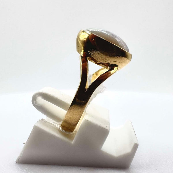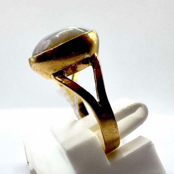 Sublimez votre style avec cette bague en or jaune 750/1000, rehaussée d’une pierre nacrée blanche pour un éclat chic et intemporel.