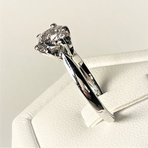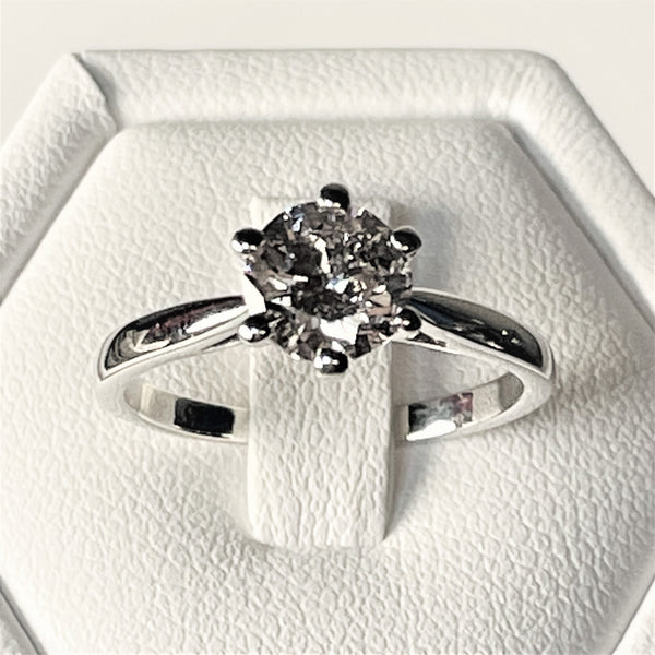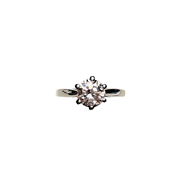 Bague Or Blanc Solitaire avec un Diamant de 1,15 Ct serti de 6 griffes. Cette bague est neuve et a été façonnée sur mesure par un joailler.