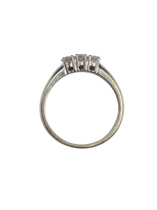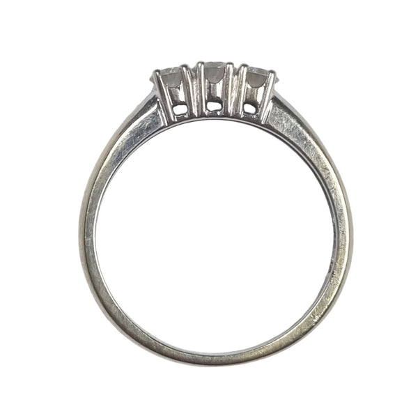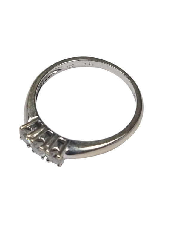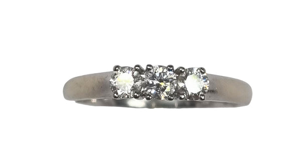 Ravissante bague à 3 diamants de 0.10 carat chacun. Pour une grande occasion ou pour soit même, elle sera la nouvelle partenaire de votre main.