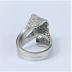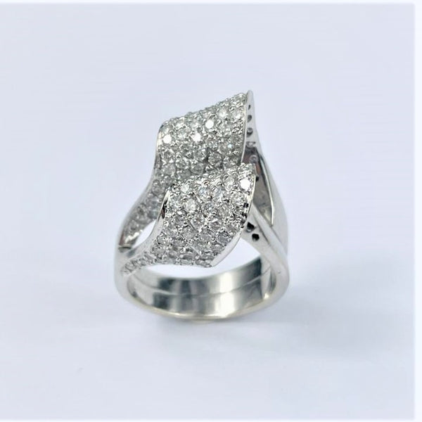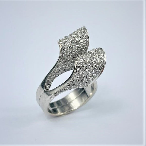 Belle bague ruban en or blanc 750/1000 pavée de diamants brillantés