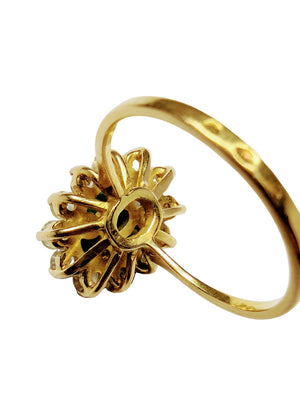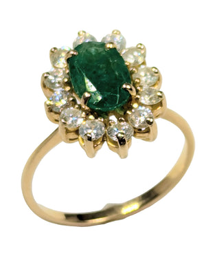 Etat : pierre vertes non certifiée - rayée Ravissante bague avec 12 diamants qui mettent en valeur la pierre centrale.