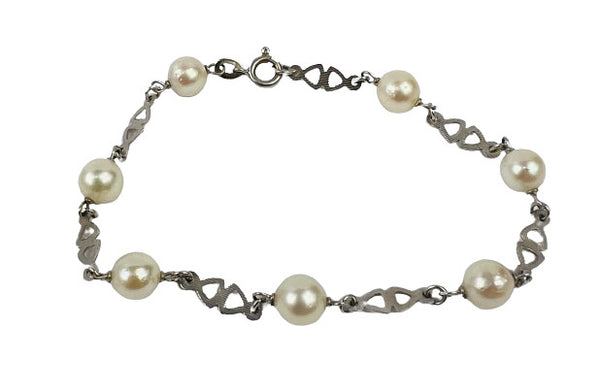 Ravissant bracelet à la maille raffinée et originale en or blanc ave Perles de Cultures.