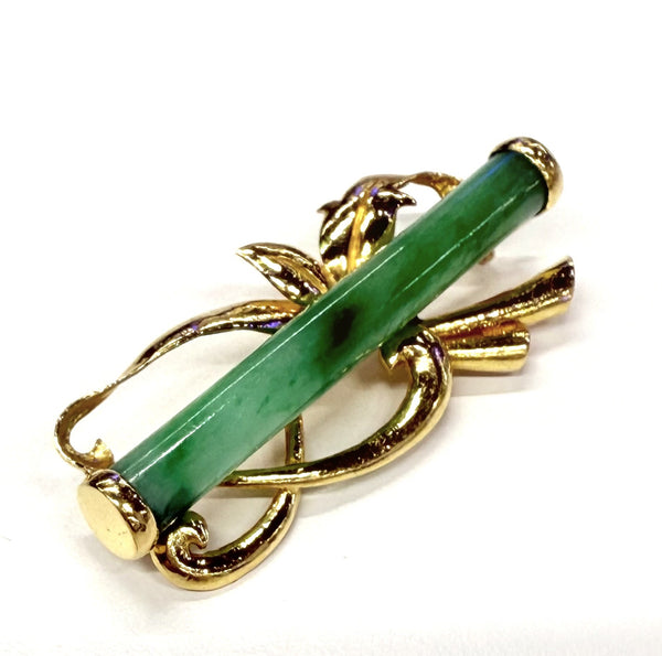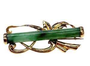 Magnifique broche en or jaune 750/1000 (18k), et pierre de jade