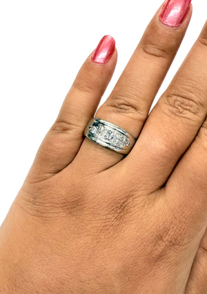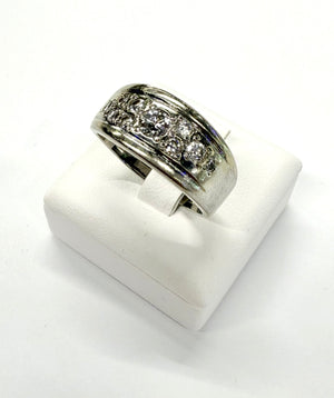 Bague Jonc en Or blanc 18k avec diamants et oxyde de zirconium