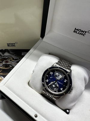 Fournis avec : Boite d'origineBracelet d'origineCertificat d'authenticitéFacture Magnifique montre Mont blanc automatique Géosphère 1858, étanchéité 100m, réserve de marche 42h, acier titane