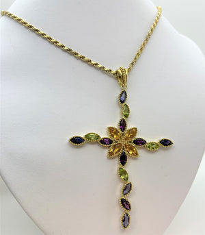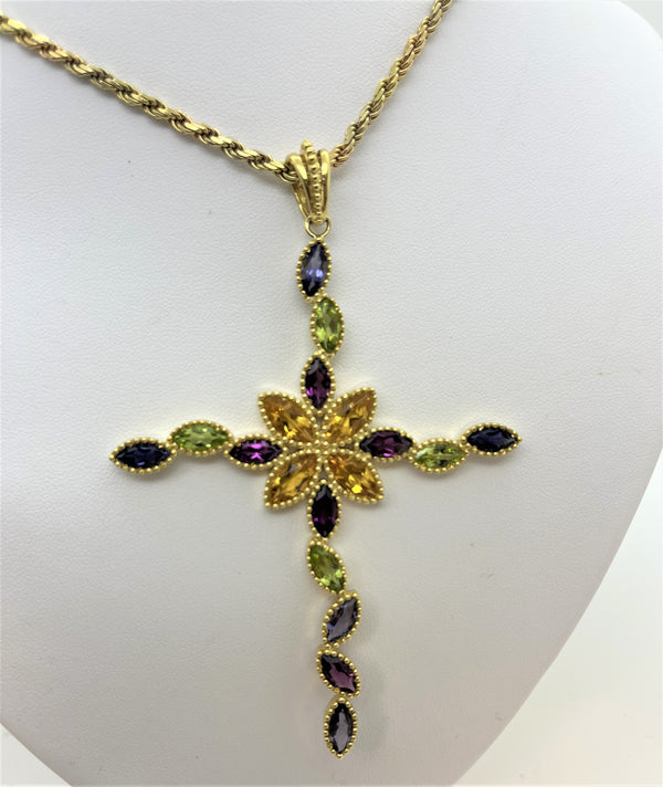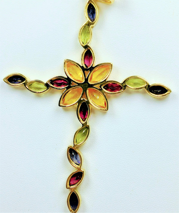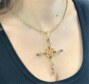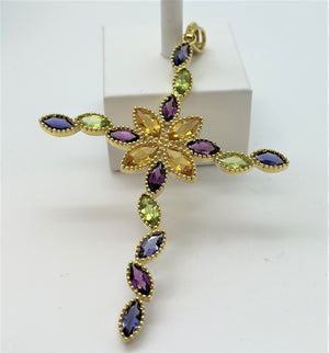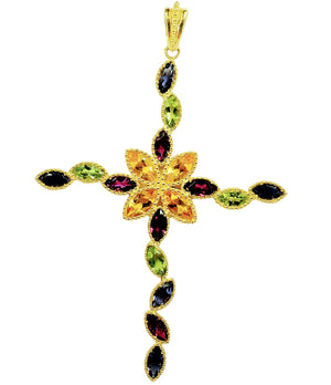 • Pendentif Croix Or Jaune avec Pierres Fines