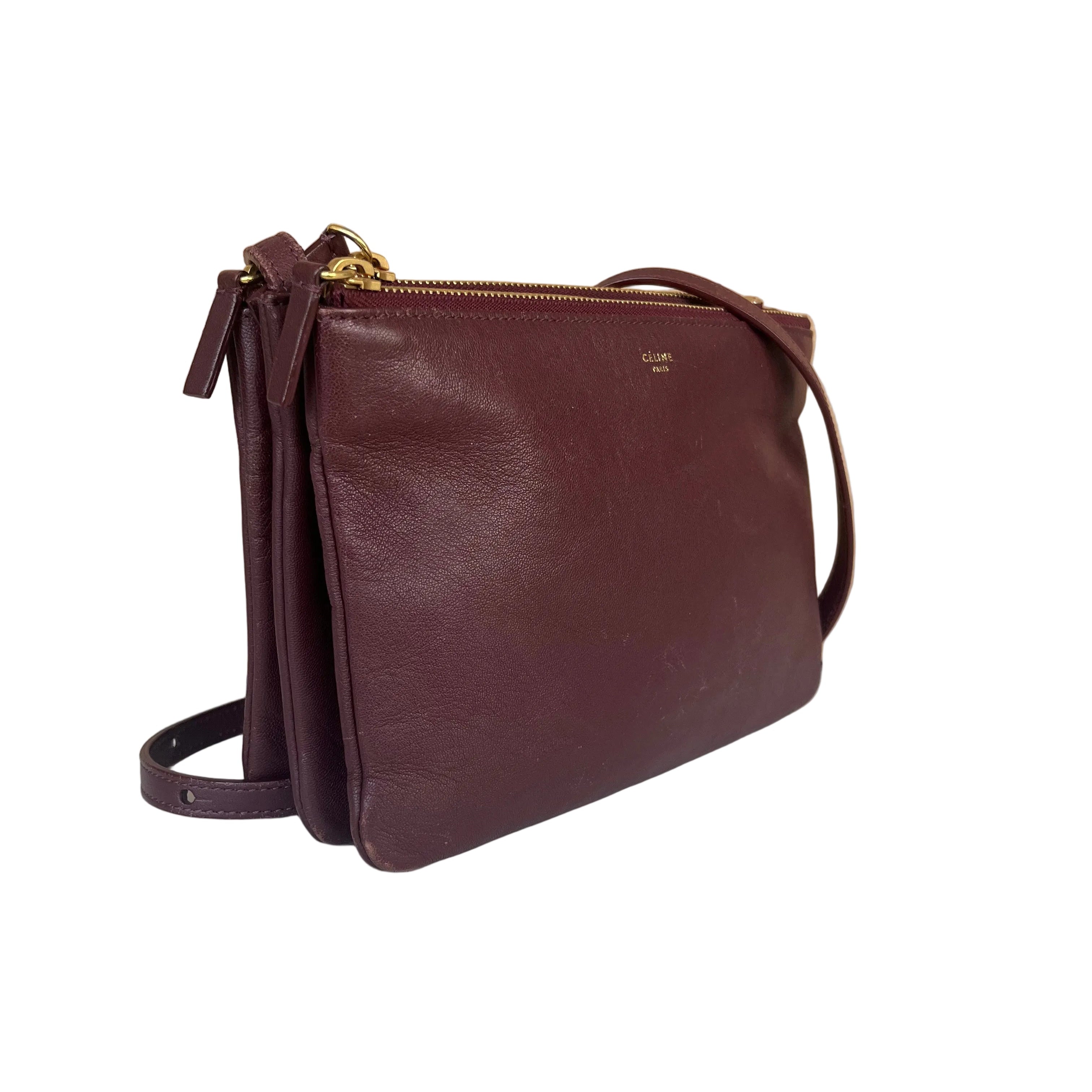Sac à bandoulière Céline Trio en cuir bordeaux