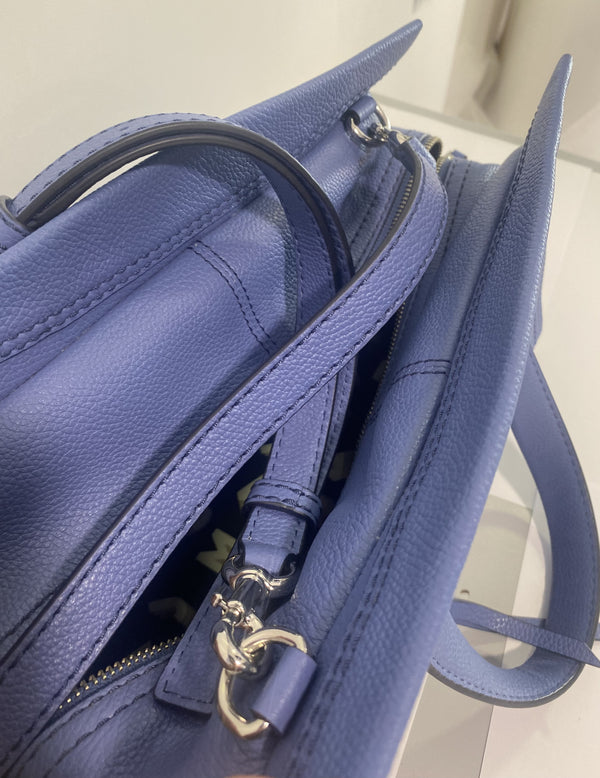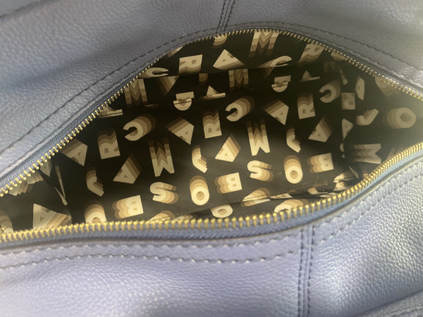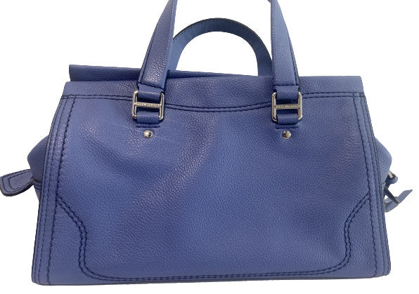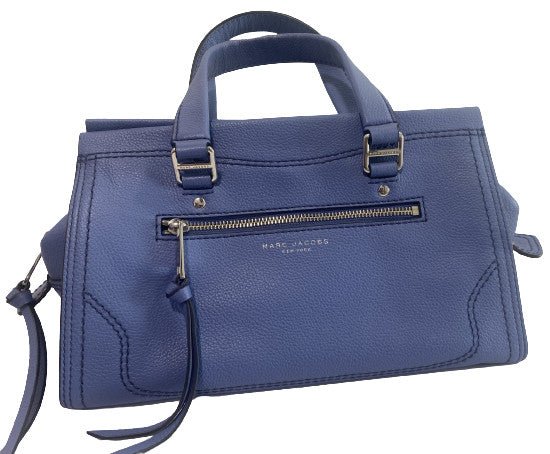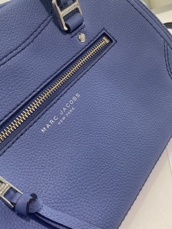 Très joli sac à main Marc Jacobs bleu avec possibilité de mettre une bandoulière (fournie avec) détail du sac couleur argenté.