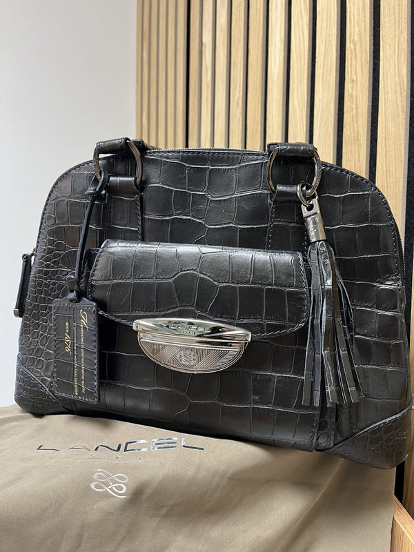 Très joli sac de chez Lancel modèle Adjani, très élégant en cuir façon croco et très pratique avec son intérieur multi poches et son cadenas .