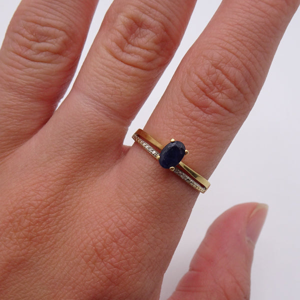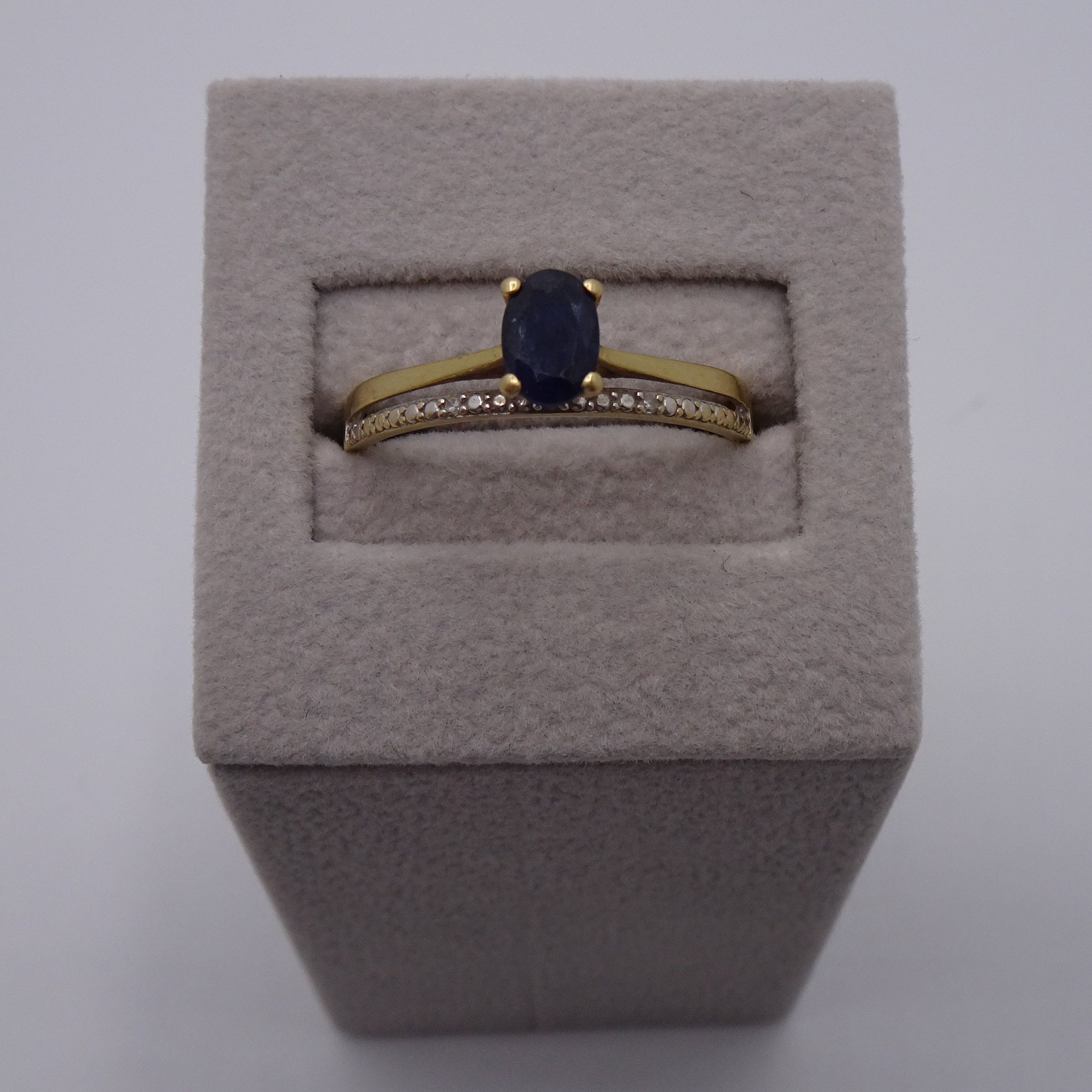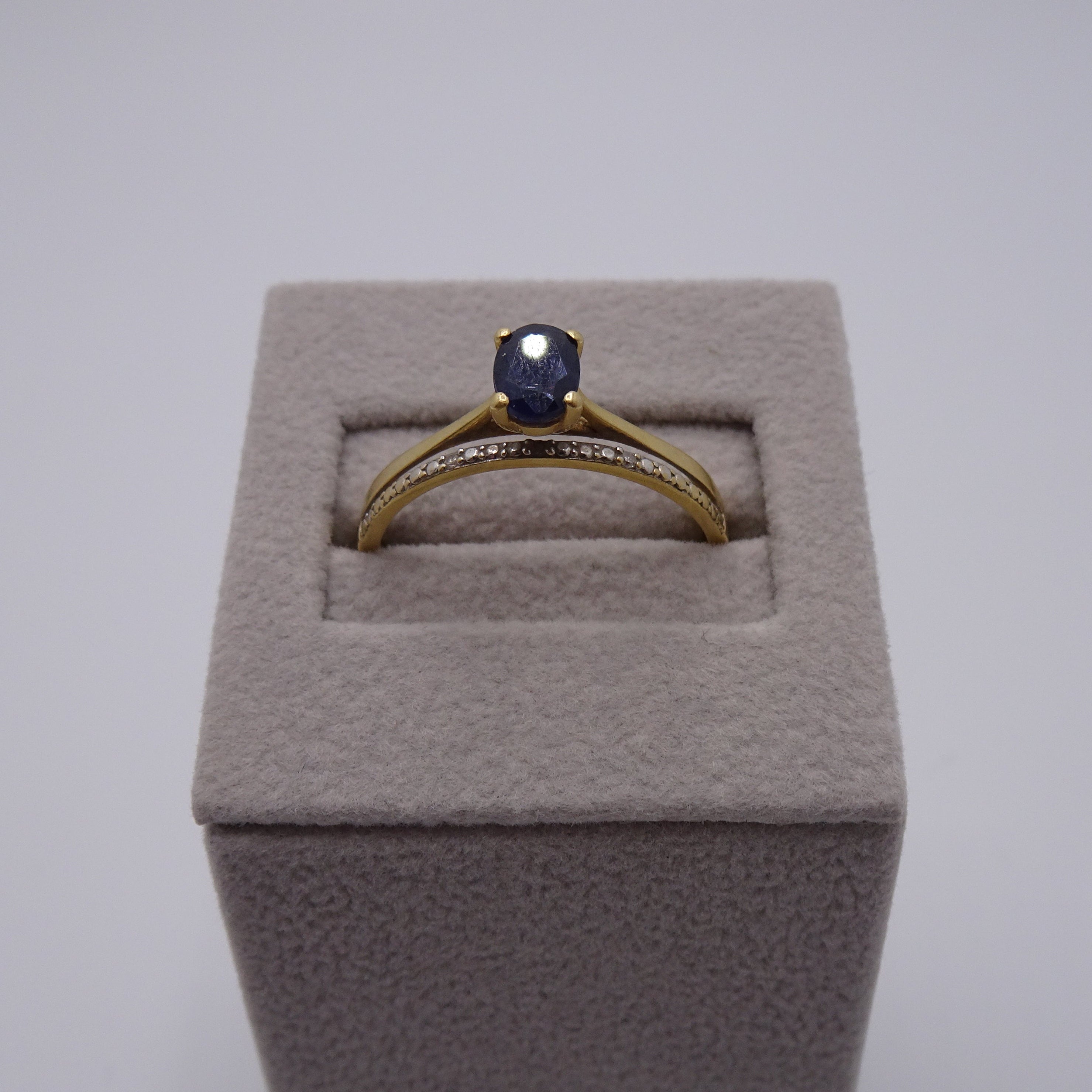 - Nombre de pierres : 1 saphir d'environ 0.15 carats + 2 diamants taille brillant