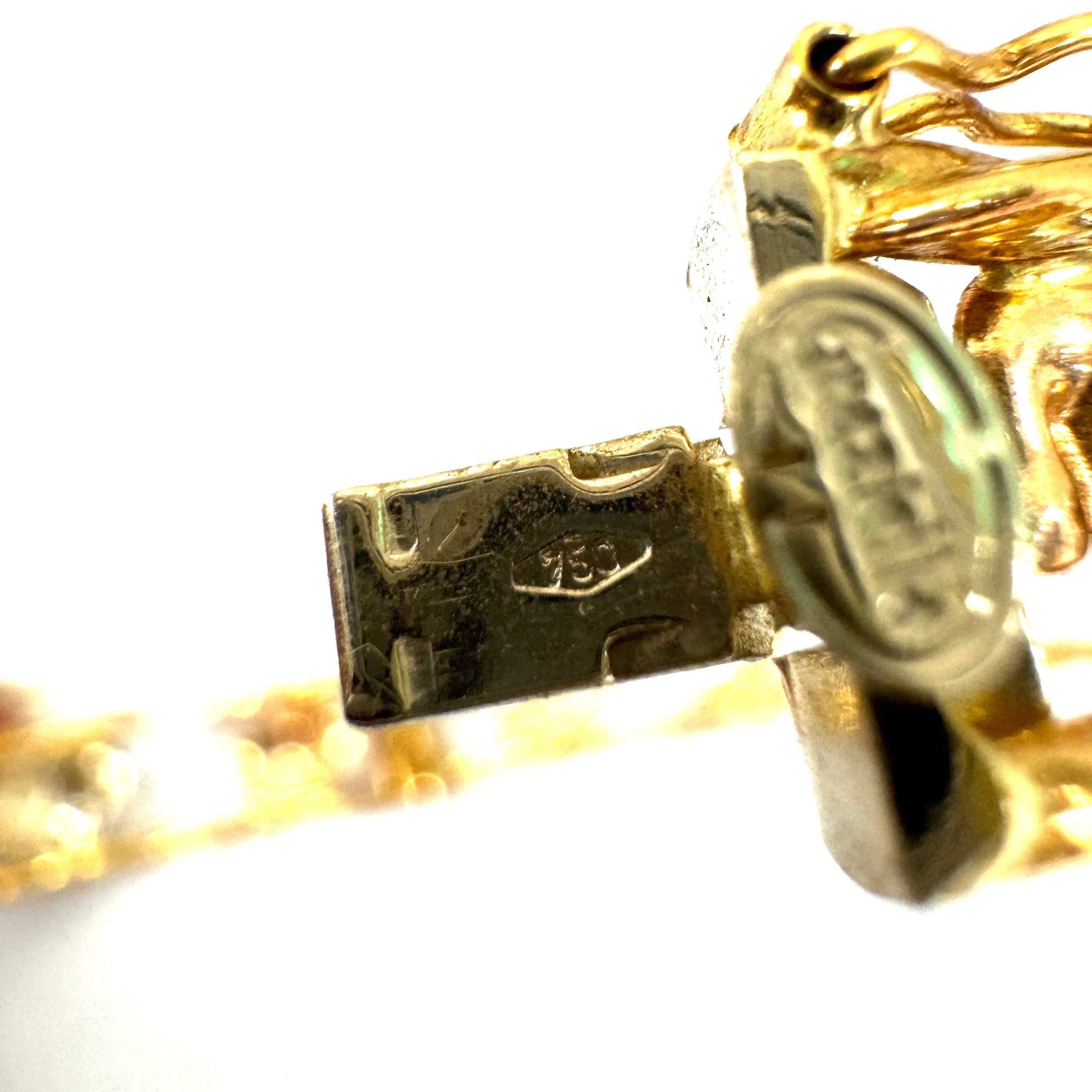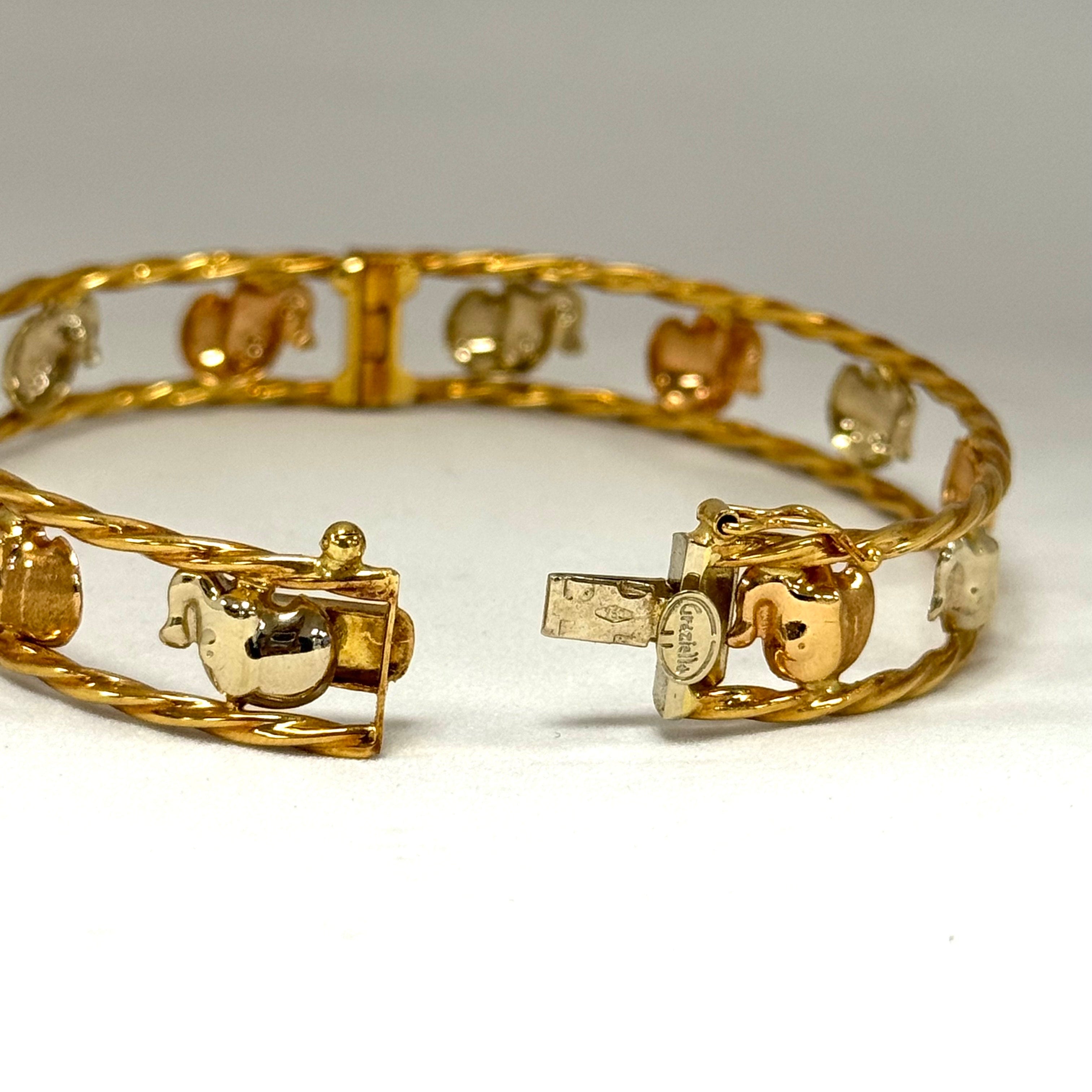 Bracelet jonc en or blanc et or rose 18 carats (750/1000), au design élégant et bicolore. Réalisé en or massif et poinçonné 750, il pèse 13,72 grammes et offre une belle présence au poignet. Ses dimensions équilibrées (20 cm de longueur, 1,1 cm de largeur, 3 mm d’épaisseur) assurent confort et maintien, complétées par un fermoir à cliquet sécurisé. En bon état, ce bijou est un choix raffiné et durable.