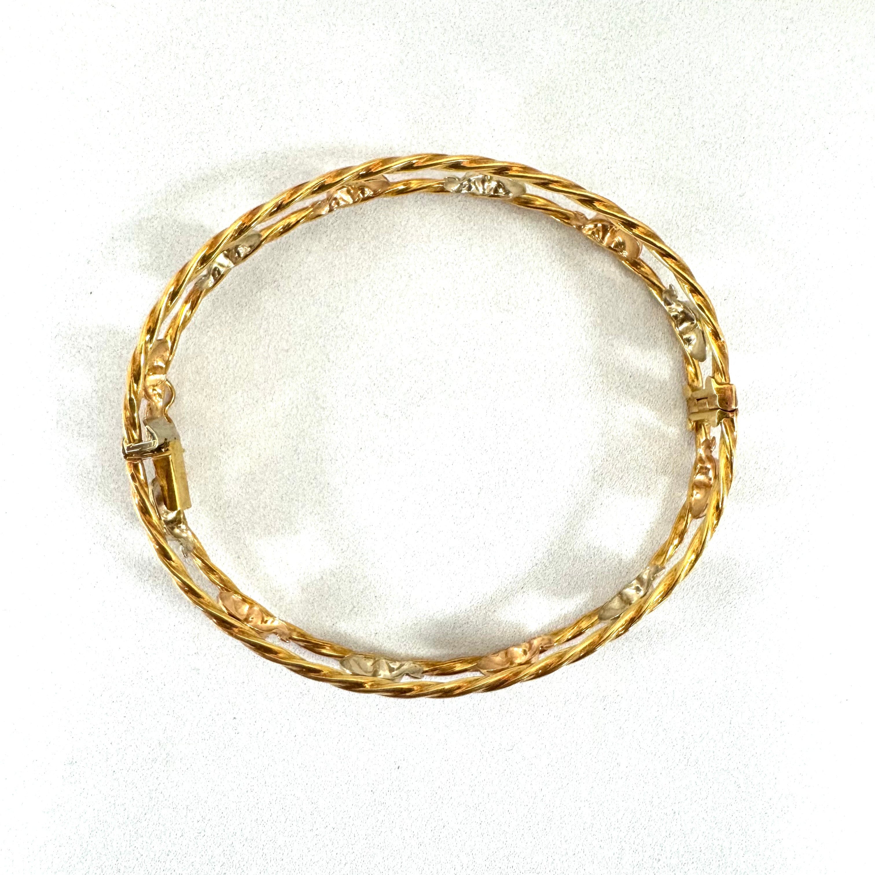 Bracelet or Blanc et Rose jonc 18K - 20cm - 13.72G