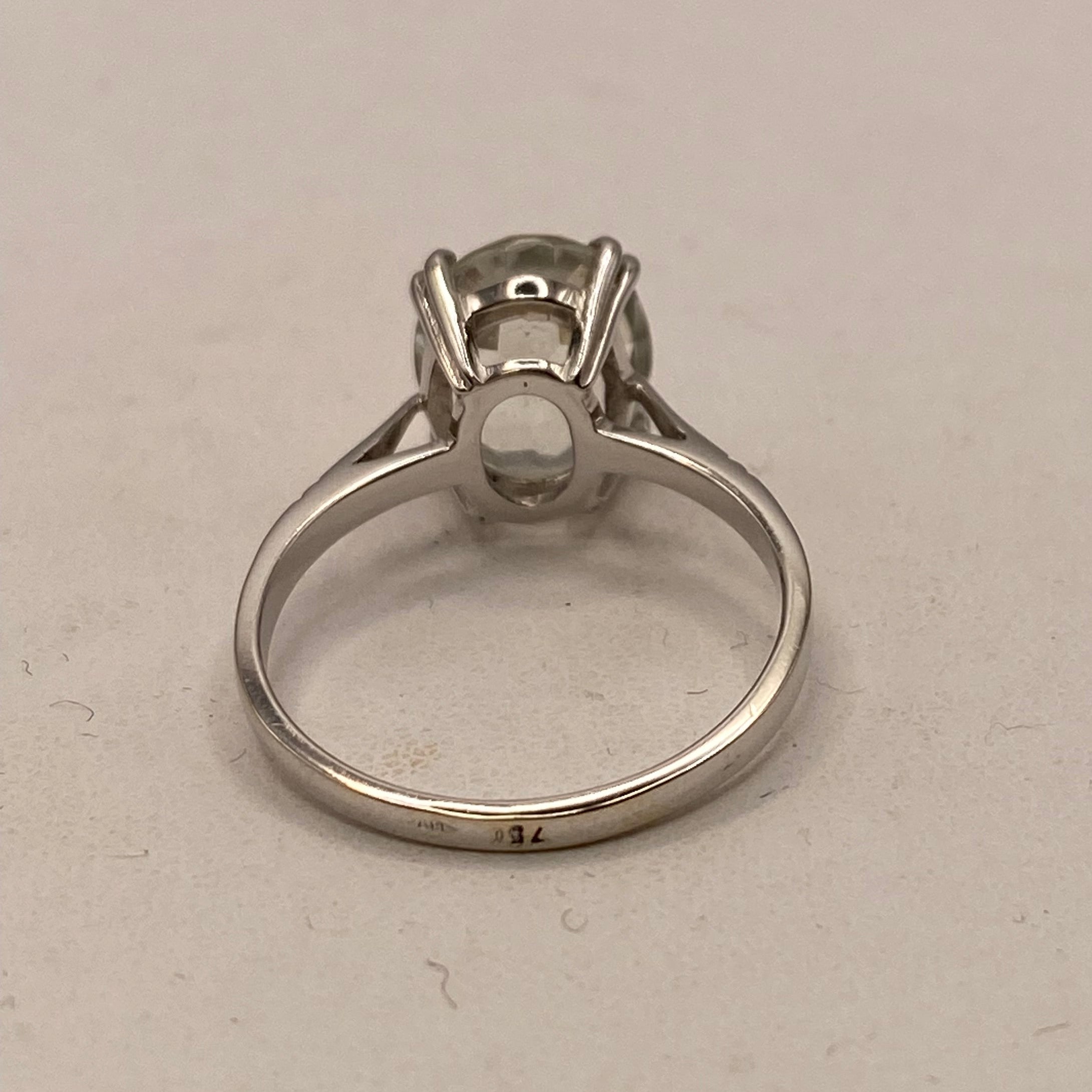 Élégante bague en or blanc 18 carats, sertie d’une délicate aigue-marine pâle qui lui confère une touche de douceur et de raffinement. Son design sobre et lumineux met en valeur la pierre centrale, idéale pour celles et ceux qui recherchent un bijou élégant et intemporel