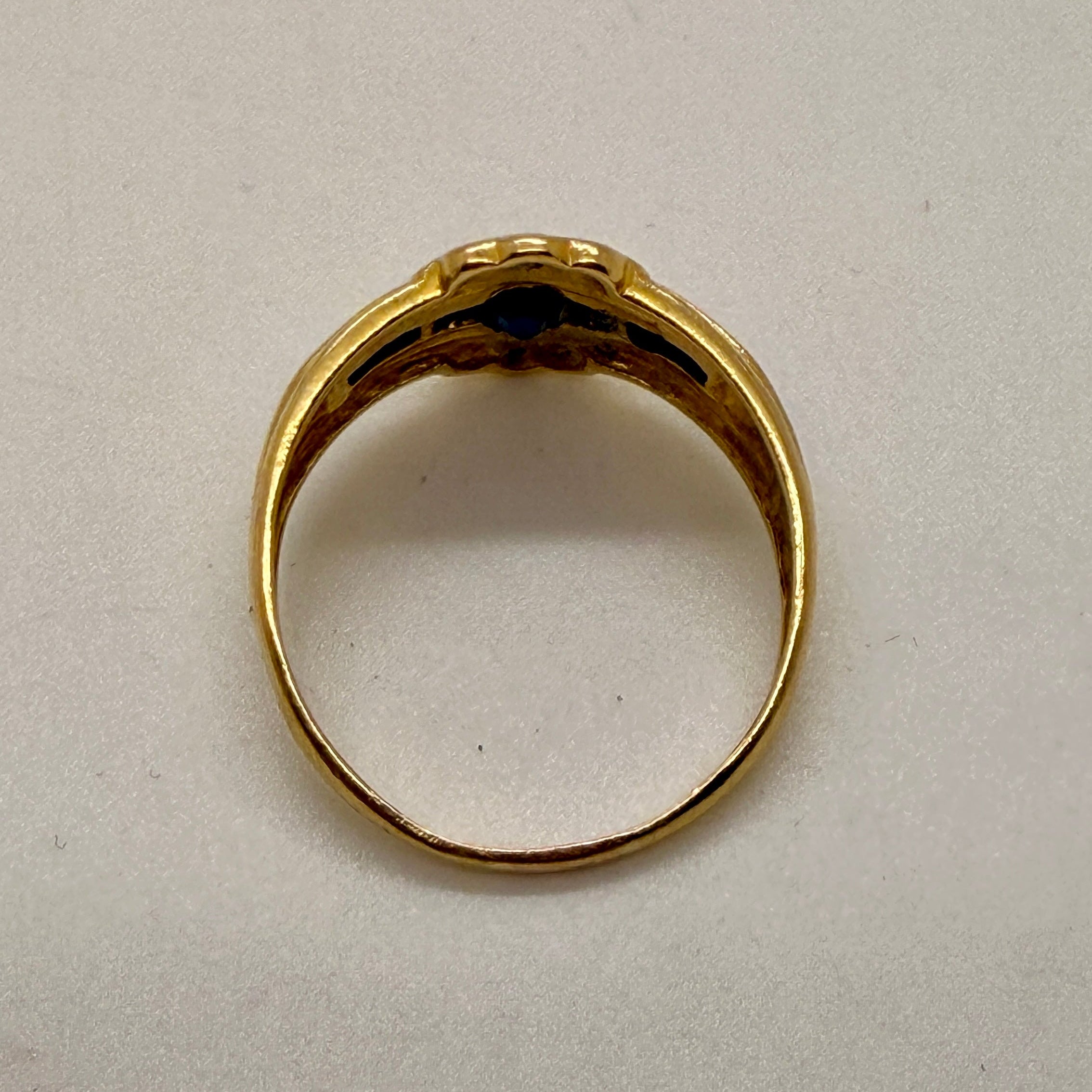Bague empierrée en or jaune 18 carats (750/1000), poinçon 750. Poids : 3,27 g · Taille : 54. Sertie d’oxydes de zirconium. État : très bon.