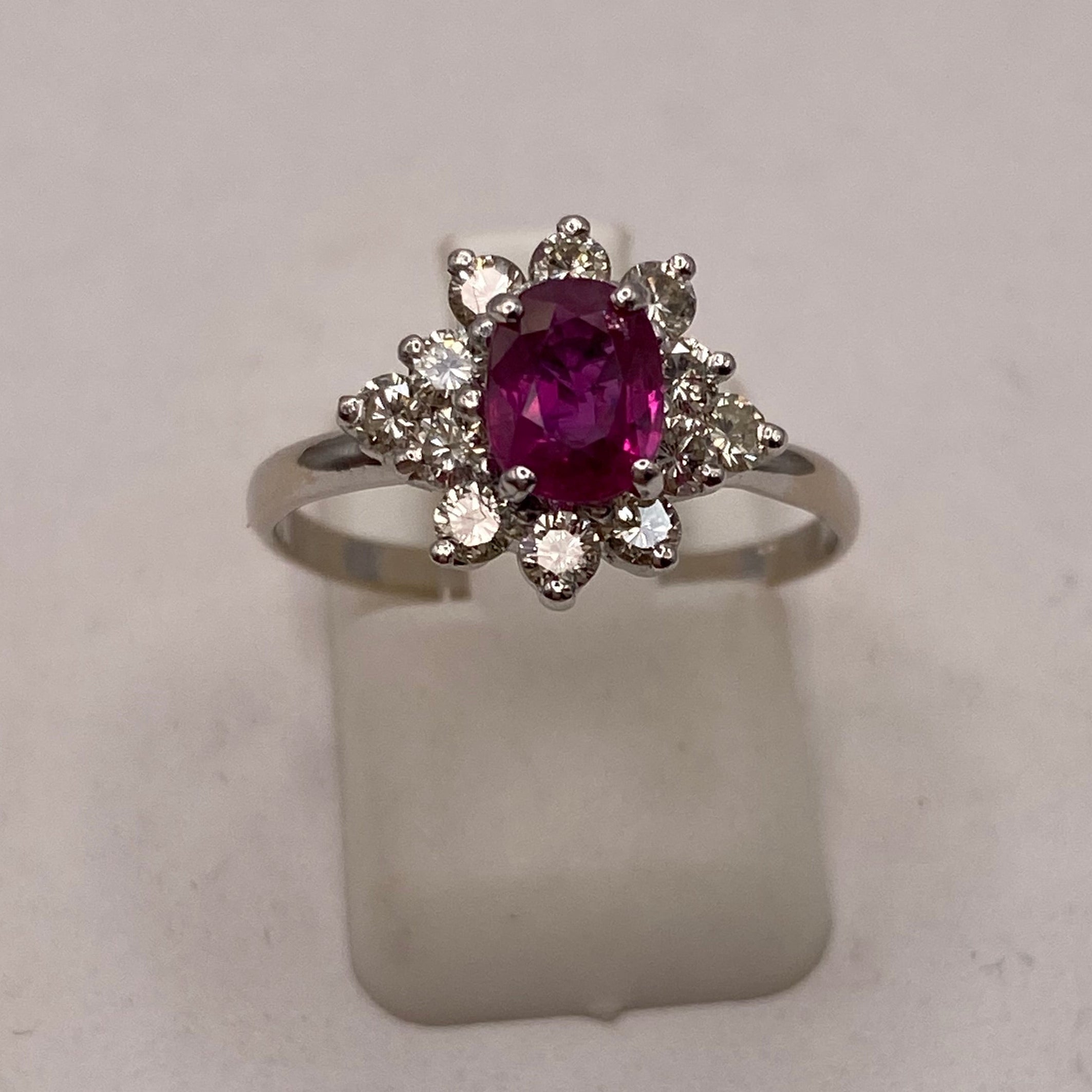 - Nombre de pierres : 1 rubis rose , 12 diamants (0,02 carats)