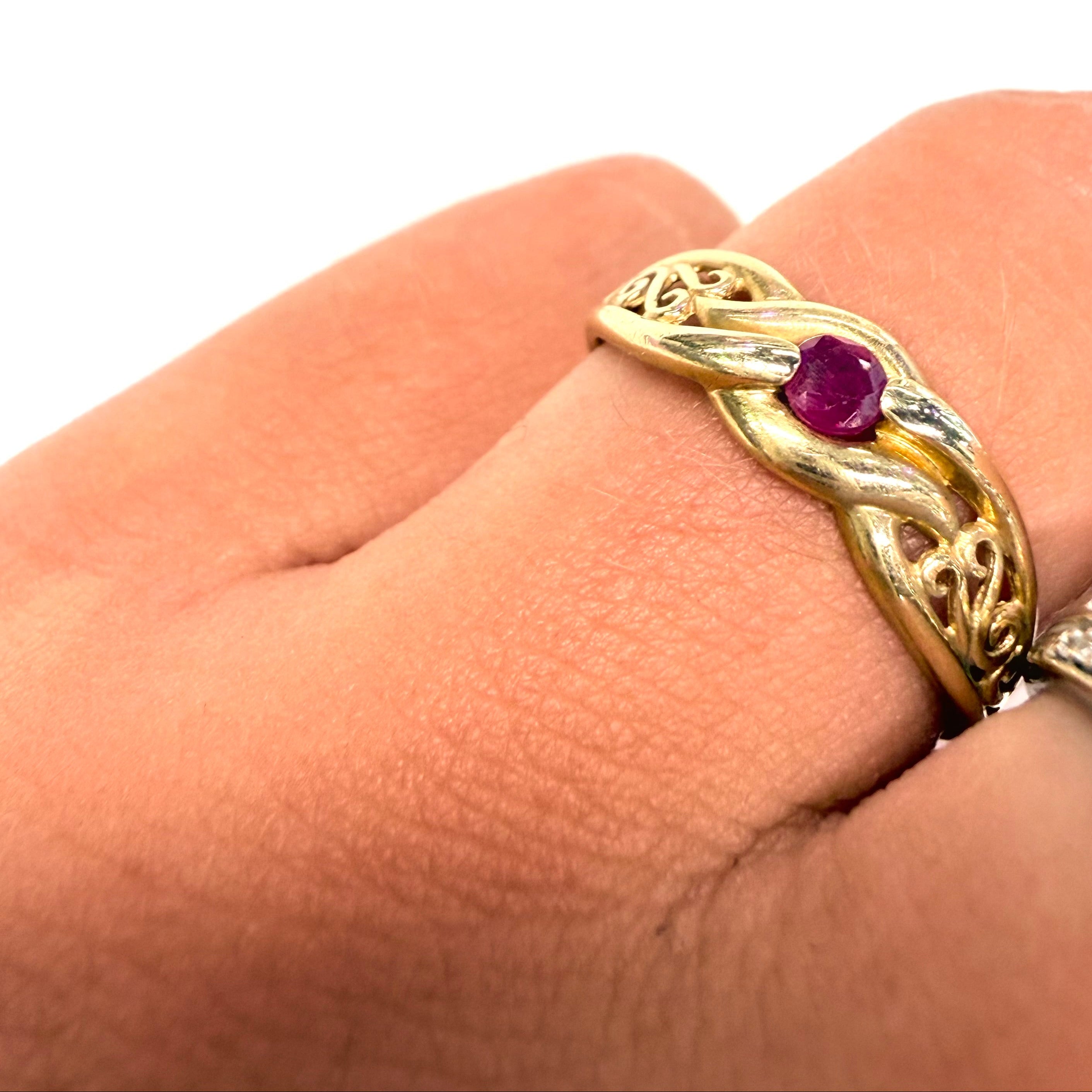 • Bague Or Jaune 18k avec Rubis - taille 54