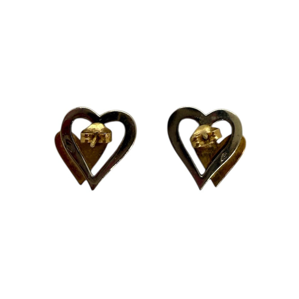 boucles d’oreilles non pendantes en or jaune et or blanc 18 carats (750), 1,89 g, 13 x 12 mm. Fermoir poussette, très bon état.