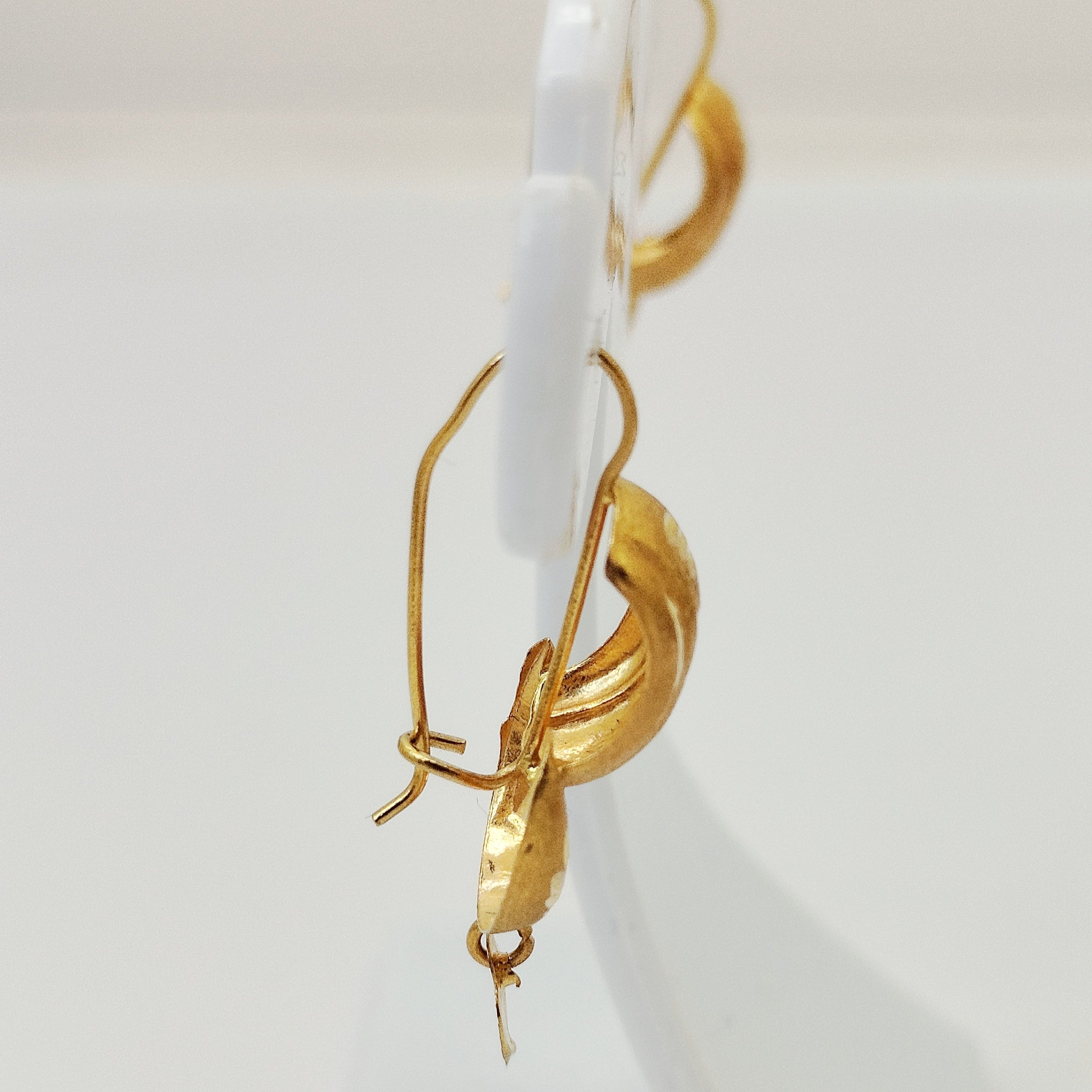 Boucles d’oreilles pendantes en or jaune 21 carats, en or massif poinçonné 21k. Fermoir crochet confortable et sécurisé. Poids de 2,30 g, hauteur 3 cm. Un bijou élégant en bon état, alliant pureté, valeur et finesse.