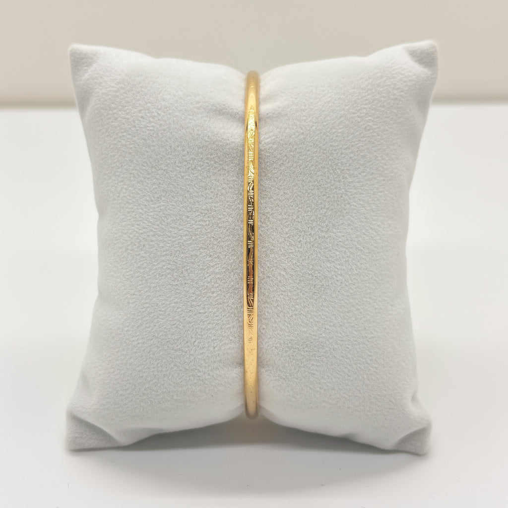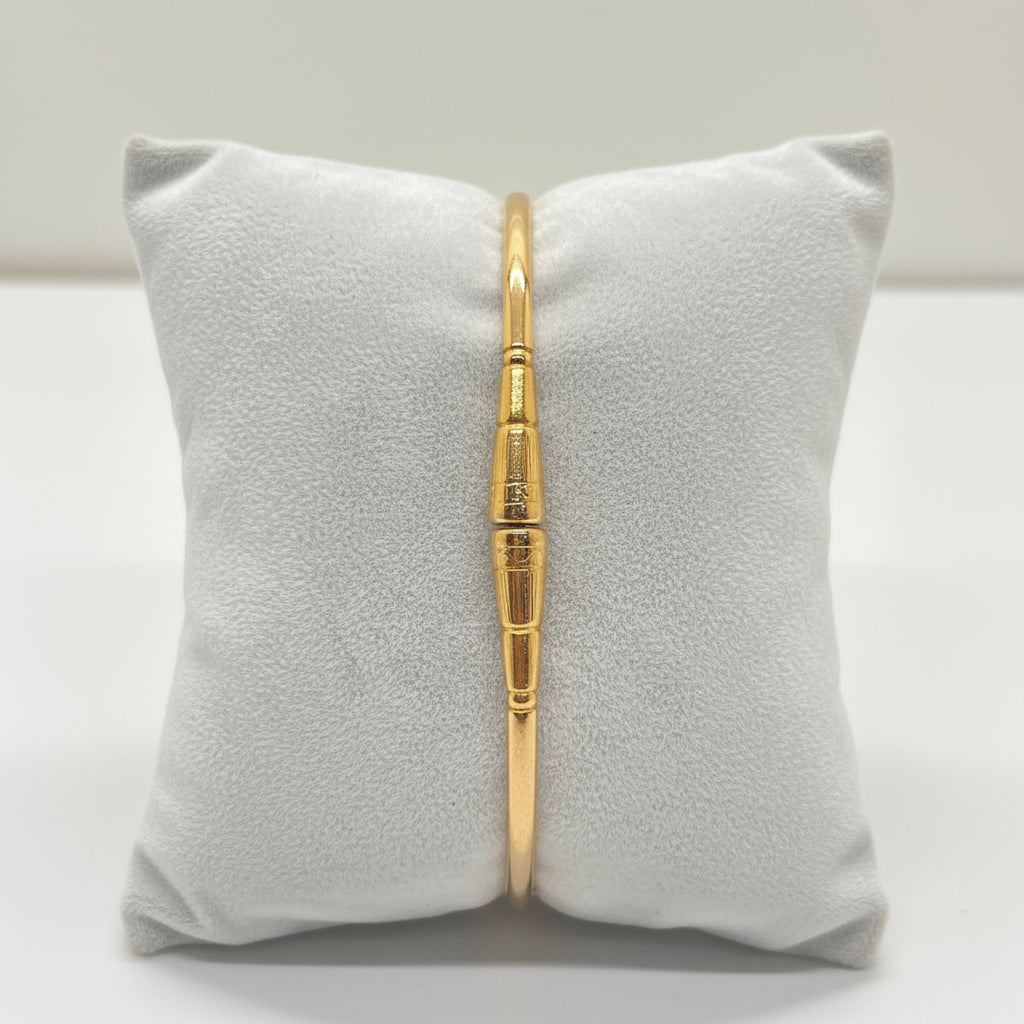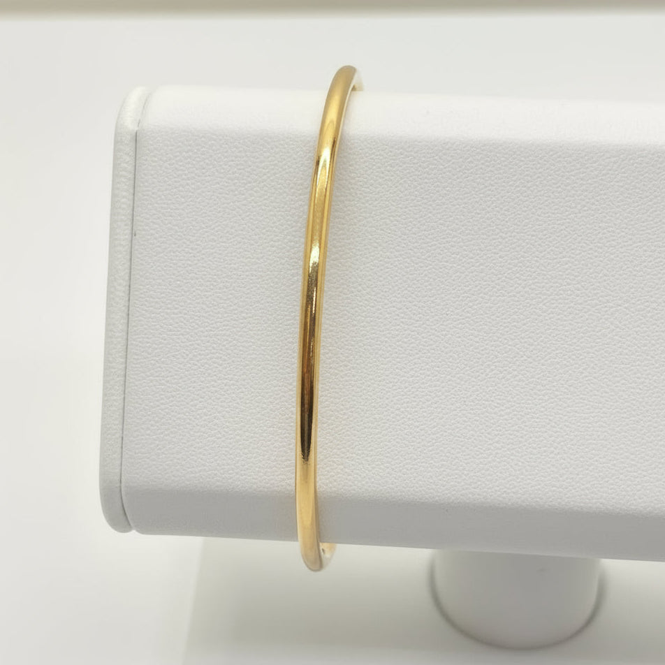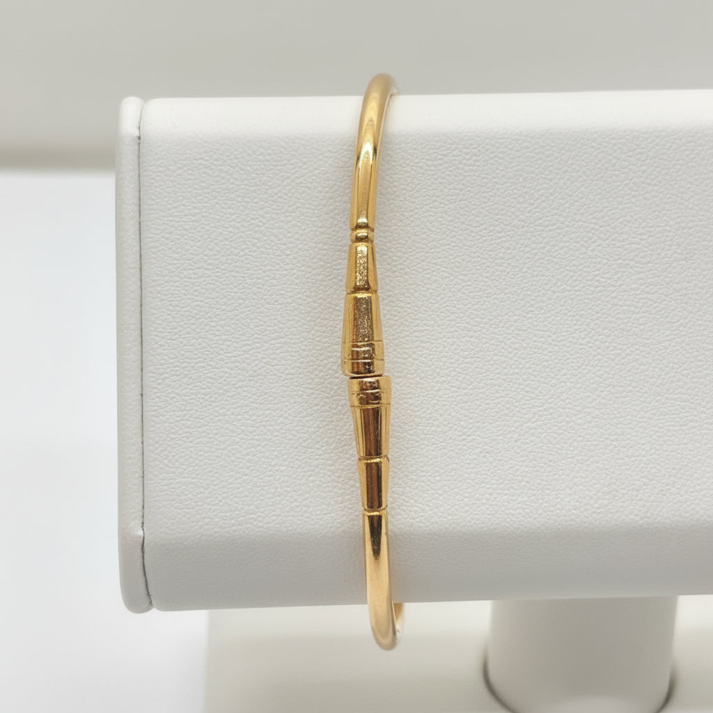 Bracelet jonc en or jaune 750/1000 (18 carats), sans poinçon. Fermoir discret intégré. Longueur : 20 cm, largeur : 6,6 cm, épaisseur : 2 mm. Poids : 18,97 g. En bon état.