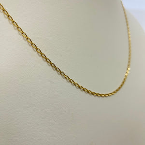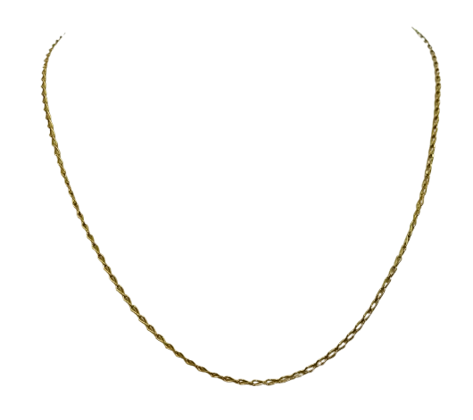 Collier de type matinée en or jaune 18 carats (750/1000), poinçonné 750, avec une maille cheval élégante. Il mesure 56 cm de long, 3 mm de large et d'épaisseur, pour un poids de 5,77 grammes. Fermoir à anneau ressort, sans pierres. Le bijou est en très bon état, à la fois discret et raffiné.