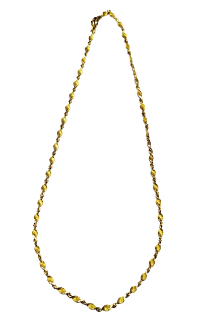 Collier matinée en or jaune au design torsadé, sobre et raffiné. Intemporel et élégant, il se porte facilement au quotidien ou pour sublimer une tenue.