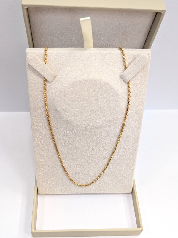 Collier de type "Princesse" est fabriqué en or jaune 18 carats (750/1000) et porte le poinçon en forme de tête d’aigle, garantissant sa qualité. Il présente une maille jaseron élégante et structurée, mesurant 50 cm de longueur, avec une largeur et une épaisseur de 0,12 mm. Son fermoir à anneau ressort assure une fermeture sécurisée. Sans pierre, ce collier met en valeur la sobriété et la brillance de l’or. Il est proposé en très bon état.